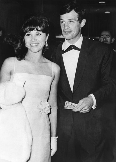 60年代を感じさせるタイを締め、妻のエロディ・コンスタンティンと。(1964年)