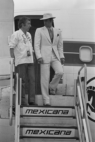 メキシコでの『おかしなおかしな大冒険』の撮影で見せたカラフルコーデ。(1973年)
