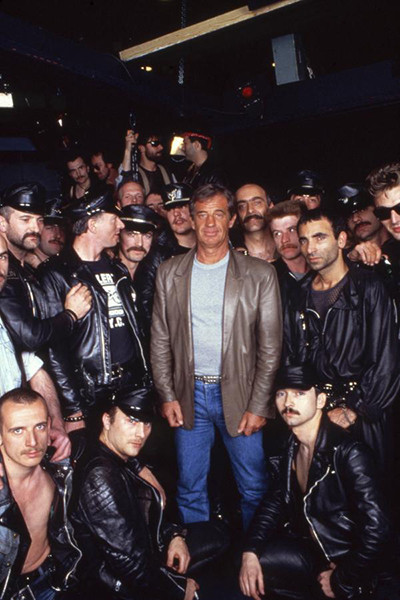 『パリ警視J』の撮影現場では、常にレザーへの愛をのぞかせていた。(1983年)