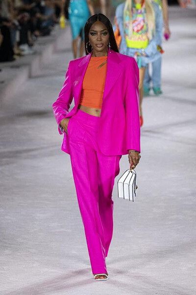 ナオミ・キャンベルはピンクのパンタロンスーツ。(ミラノ、2021年9月24日)