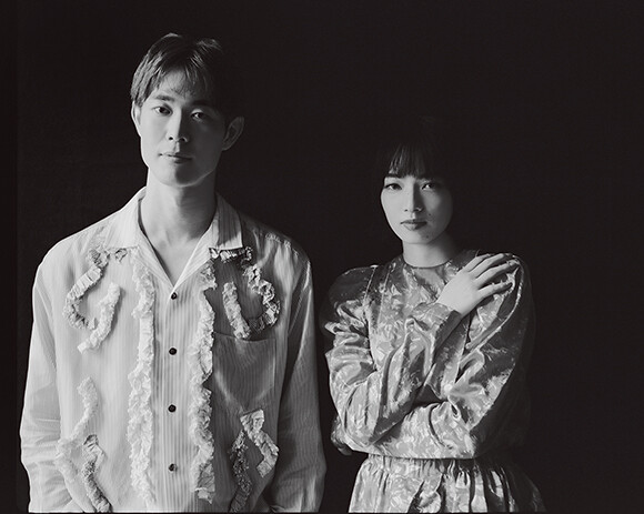 小松:トップ¥45,100、スカート¥79,200/ともにチカ キサダ(エドストローム オフィス) 宮沢:シャツ¥39,600、パンツ¥49,500、サンダル¥53,900/以上トーガ ビリリース(トーガ 原宿店)