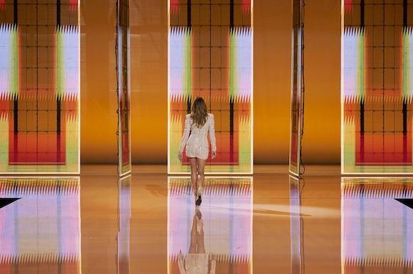 4. カーラ・ブルーニが、セーヌ・ミュジカルで行われたバルマンのファッションショーをビヨンセの歌声とともに締めくくった。(パリ、2021年9月29日)