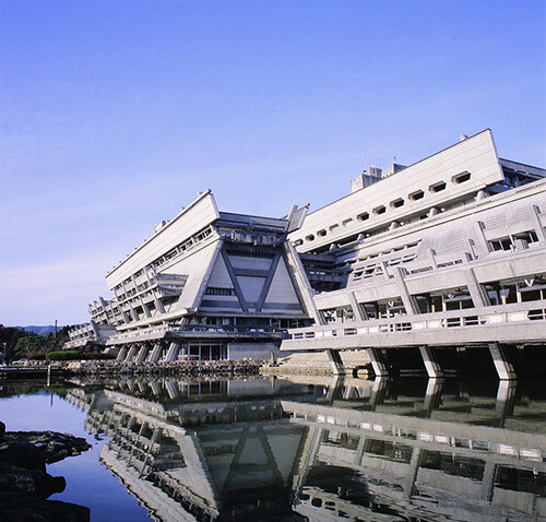 前田珈琲がプロデュースする「ニワカフェ」がオープンしたばかりの国立京都国際会館。設計者は丹下健三の片腕として活躍した建築家・大谷幸夫。台形の屋根型は日本の伝統的な稲掛け、神明造りの神社などを連想させる。画像提供:国立京都国際会館
