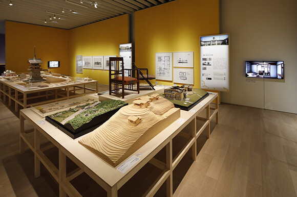 展示は「古都の再生と近代」「様式の精華」「和と洋を紡ぐ」「ミッショナリー・アーキテクトの夢」「都市文化とモダン」「住まいとモダン・コミュニティ」「モダニズム建築の京都」という7つのセクションに分かれ、36の建築を紹介。展覧会初出展や重要文化財などの貴重な図面、写真、スケッチ、模型、家具、映像など、400点以上の多様な資料が、テーマパークのごとくずらりと並ぶ。