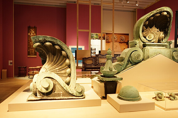 『モダン建築の京都』の展示風景。Section2「様式の精華」では京都府庁旧本館の屋根を飾る装飾彫刻を間近に見られる。