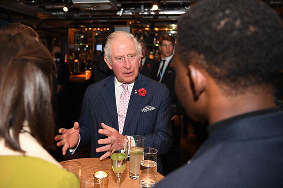 4 COP26のオープニングレセプションにブルーのピンストライプのスーツで登場したチャールズ皇太子。(グラスゴー、2021年11月1日)