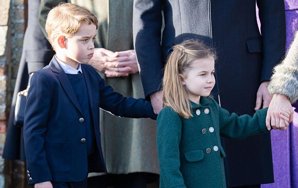 クリスマスミサに出席するジョージ王子とシャーロット王女。(キングズ・リン、2019年12月25日)photo: Getty Images