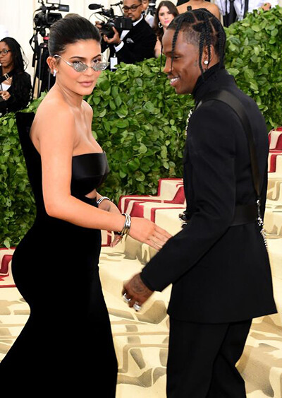 メット・ガラに現れた、カイリー・ジェンナーとパートナーのラッパー、トラヴィス・スコット。(ニューヨーク、2018年5月7日)photo: Abaca