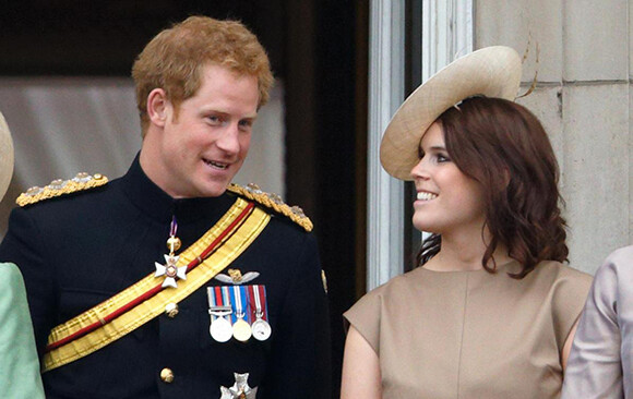 祝賀行事「トゥルーピング・ザ・カラー」の際、バッキンガム宮殿でのハリー王子とユージェニー王女。(ロンドン、2015年6月13日) photo: Getty Images