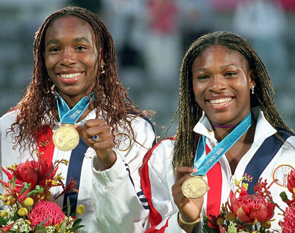 2000年のシドニーオリンピックには姉妹でダブルスを組んで出場。9月28日、シドニーのセンターコートで行われた表彰式で金メダルを手に、勝利の笑みを浮かべるふたり。