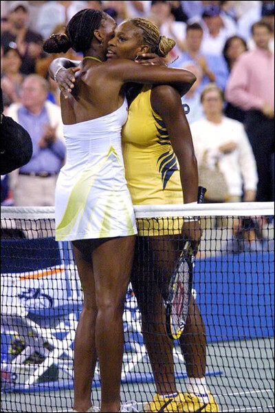 ときにライバルでもあるビーナス&セリーナ・ウィリアムズ。つねに互いに支え合ってきた姉妹は2001年にアーサー・アッシュ・スタジアムのセンターコートで行われた全米オープン決勝戦で歴史的姉妹対決に挑んだ後も、互いを称え合った。