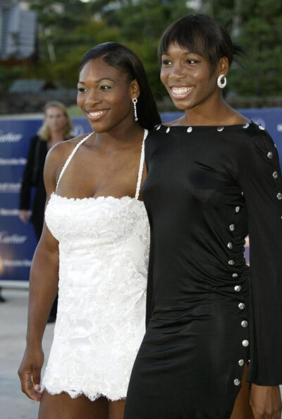 スポーツウェアからパーティードレスに着替えて、連日イベントに奔走する姉妹。2003年ローレウス世界スポーツ賞授賞式にて。