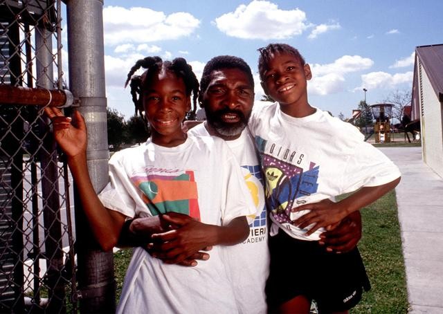 セリーナ&ビーナス・ウィリアムズと父のリチャード。1991年、カリフォルニア州コンプトン。photo : Getty Images