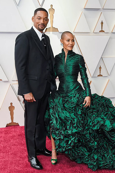 ウィル・スミス、そしてジャンポール・ゴルチエを着たジェイダ・ピンケット・スミス。(ロサンゼルス、3月27日)