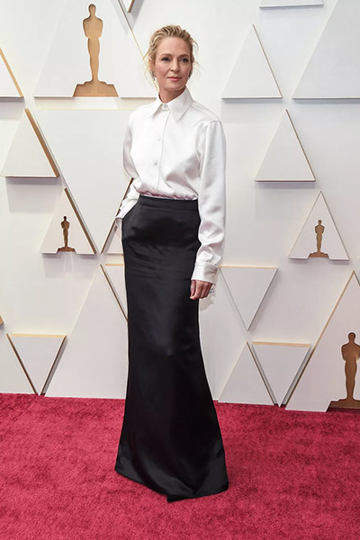 ユマ・サーマンはボッテガ・ヴェネタ。 (ロサンゼルス、3月27日)