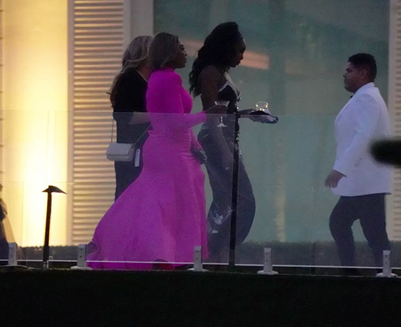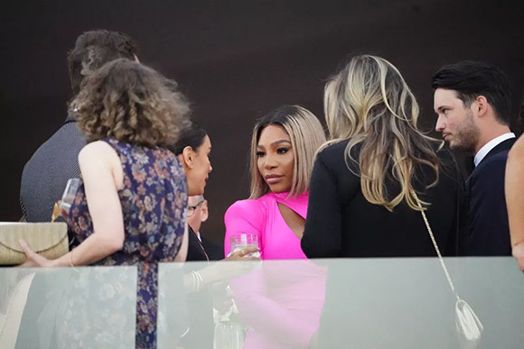 セリーナ・ウィリアムズは、グラフィカルなフューシャドレスで登場。