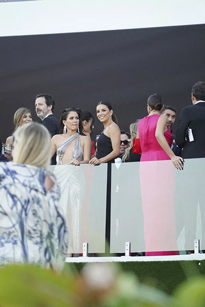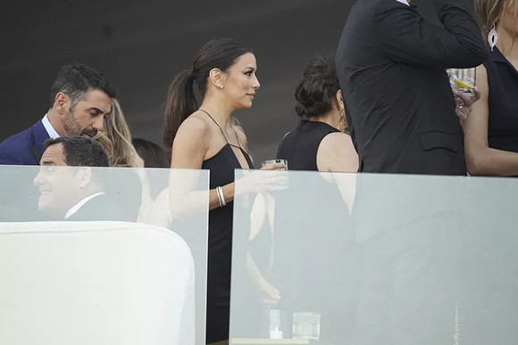 エヴァ・ロンゴリアはヴィクトリア・ベッカムのブランドのブラックドレスを着ていた。