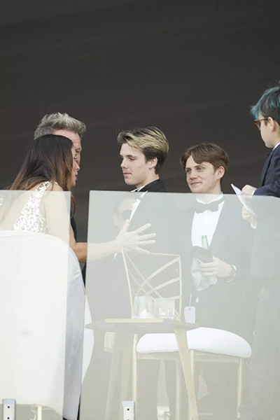 ゲストと話すブルックリンの弟、ロメオ・ベッカム(19歳)。