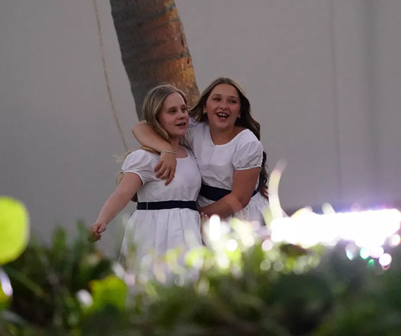 白いドレスと花冠姿のハーパー・ベッカム(中央)。