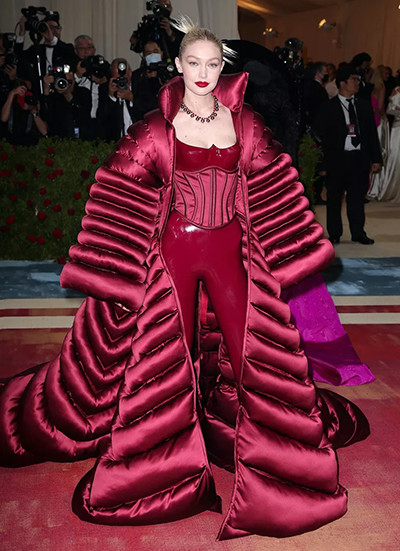 メットガラ2022でヴェルサーチを着たジジ・ハディッド。(ニューヨーク、5月2日)