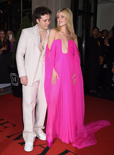 メットガラ2022で、ヴァレンティノを着たブルックリン・ベッカムとニコラ・ペルツ。(ニューヨーク、5月2日)