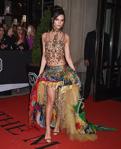 メットガラ2022でヴェルサーチを着たエミリー・ラタコウスキー。(ニューヨーク、5月2日)