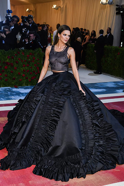 メットガラ2022でプラダを着たケンダル・ジェンナー。(ニューヨーク、5月2日)