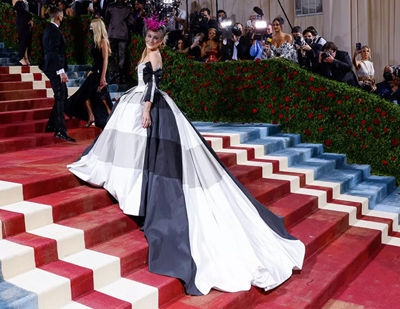 メットガラ2022で、クリストファー・ジョン・ロジャースを着たサラ・ジェシカ・パーカー。(ニューヨーク、5月2日)
