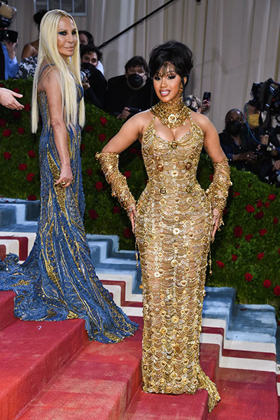 メットガラ2022でヴェルサーチに着たカーディ・Bとドナテラ・ヴェルサーチ。(ニューヨーク、5月2日)