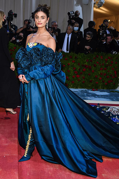 メットガラ2022でドルチェ&ガッバーナのサポートを受けるミス・ソーヒーに身を包んだテイラー・ヒル。(ニューヨーク、5月2日)