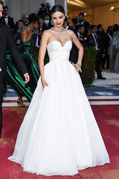 メットガラ2022でオスカー・デ・ラ・レンタを着たミランダ・カー。(ニューヨーク、5月2日)