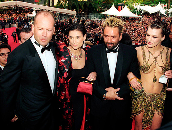 同じく1997年に、SF映画『フィフス・エレメント』でカンヌに参加したミラ・ジョヴォヴィッチ。リュック・ベッソン監督のエスコートで、チェーンのブラトップを着用。映画のイメージに寄せたのか、眉なしメイクにトサカのように立てた奇抜なヘアスタイルで、かなり個性的な出立ち。何だか『スター・ウォーズ』にでも出てきそう!?