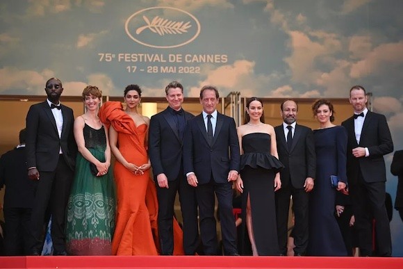 ラジ・リ、レベッカ・ホール、ディーピカー・パードゥコーン、ジェフ・ニコルス、ヴァンサン・ランドン、ノオミ・ラパス、アスガル・ファルハーディー、ジャスミン・トリンカ、ヨアキム・トリアー。(カンヌ、2022年5月24日)