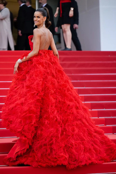 アレクサンドル・ボーティエのルックのエルザ・ジルベルスタイン。ジュエリーはブシュロン。(カンヌ、2022年5月24日)