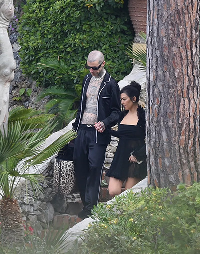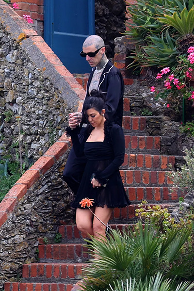 ヨットに向かうトラヴィス・バーカーとコートニー・カーダシアン。(2022年5月23日、ポルトフィーノ)