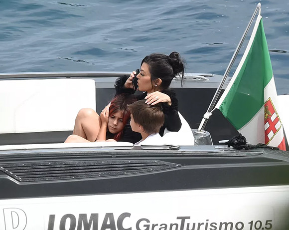ヨットはドルチェ&ガッバーナ社の所有で、同ブランドは新婦のウェディングドレスの他、カーダシアン家全員の服を任されていた。(2022年5月23日、ポルトフィーノ)