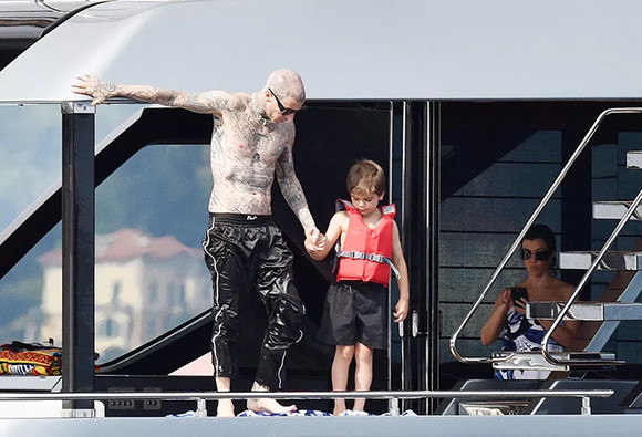 今度はコートニー・カーダシアンの息子レインとトラヴィス・パーカー。(2022年5月23日、ポルトフィーノ)