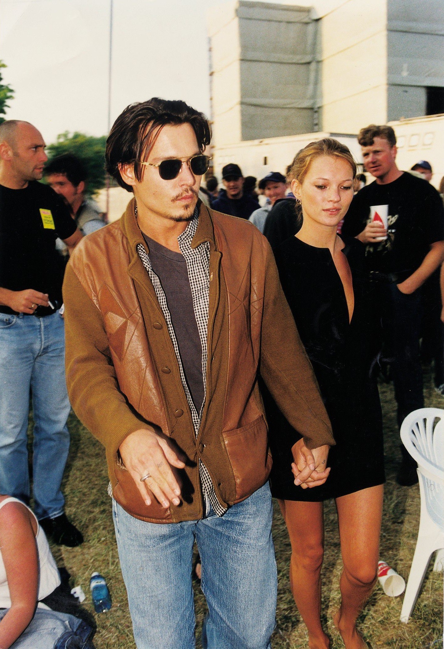 セックスピストルズのコンサート会場にて、ケイト・モスとジョニー・デップ。(ロンドン、1996年)。photo: Shutterstock/Aflo
