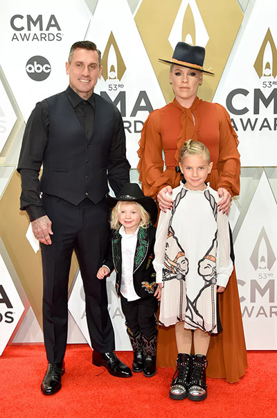 2001年に出会った歌手のピンクとモトクロスのプロライダーであるキャリー・ハートは2年後に一度別れるが、2006年に結婚した。2年後、再び破局した後に復縁し、2011年にウィロー、2016年にジェイムソンが生まれている。(テネシー州、2019年11月13日)