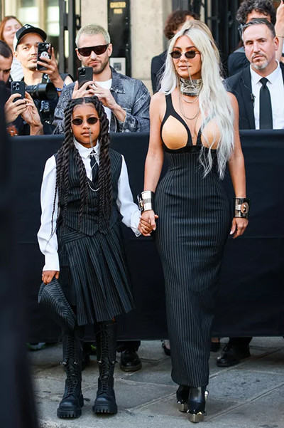 7月6日、モード界の「アンファン・テリブル(異端児)」と呼ばれたデザイナー、ジャンポール・ゴルチエに敬意を表したのはデザイナーのオリヴィエ・ルスタンだけではなかった。キム・カーダシアンと9歳の娘の格好が人々の注目を集めた。
