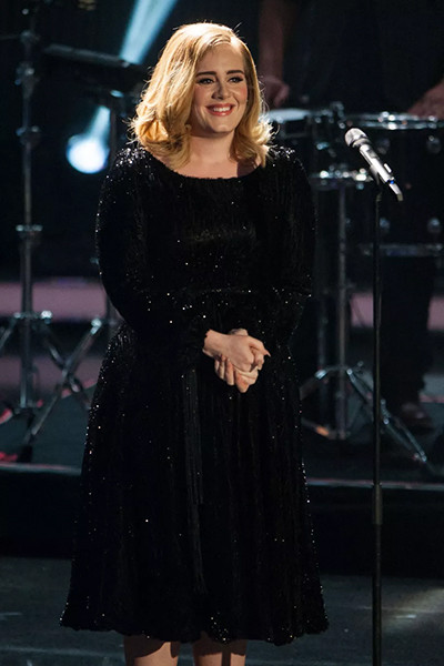 アデルは長い間、黒いドレスに黒い眼鏡を合わせるのが好きだった。(2015年11月16日、ニューヨーク)