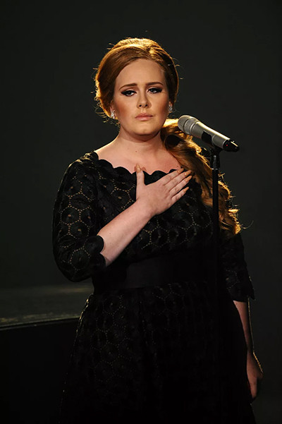 2011年MTVアワードでアデルが選んだのは、ブラックのオープンワークドレスだった。(2011年8月28日、ロサンゼルス)