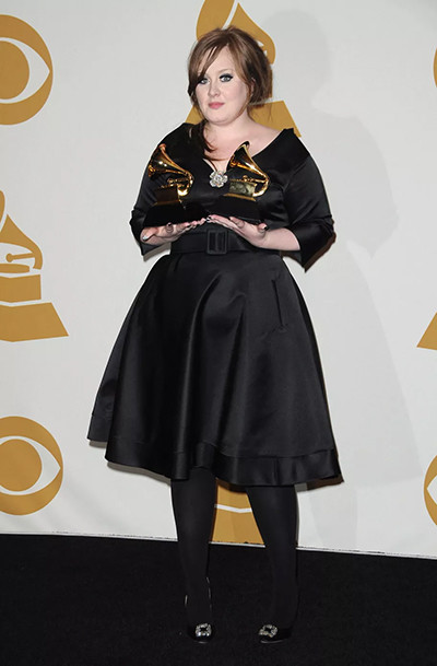 34歳の誕生日を祝うために、アデルはスキャパレリの黒のパフスリーブ・ドレスで姿を現した。