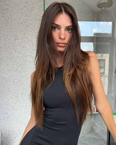 その数日後、ニューヨークの街角で、新しいヘアスタイル姿を写真に撮られた。前週の「エムラタ」は、まだ胸までしかない長さの髪を結っていたので、エクステンションである可能性が高い。この情熱的なブルネットカラーの髪は、ショートヘアやカラーリングとは異なり、飽きたら即座にロングヘアをやめることができるので、大きなリスクがない。