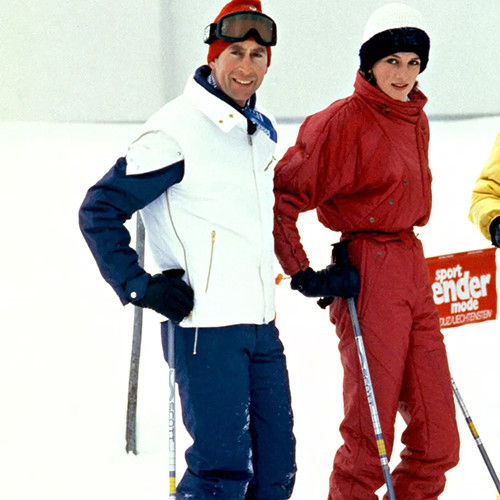 スイスのスキー場で撮影されたダイアナ妃とチャールズ皇太子。(1986年2月7日、クロスタース)