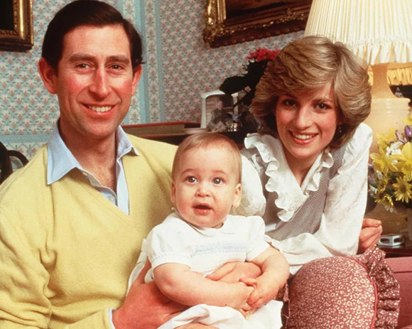 ダイアナ妃、チャールズ皇太子、ウィリアム王子、ケンジントン宮殿にて。(1983年1月1日、ロンドン)
