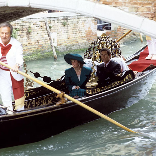 ゴンドラ遊覧を楽しむダイアナ妃とチャールズ皇太子。(1985年4月29日、ヴェニス)