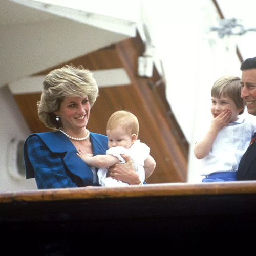 ダイアナ妃とチャールズ皇太子、息子のウィリアムとハリー、イタリアにて。(1985年5月5日、ヴェニス)