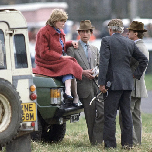 チャールズ皇太子と第1子を妊娠中のダイアナ妃、アインストリー・ナショナル競馬場にて。(1982年4月3日、アインスリー)