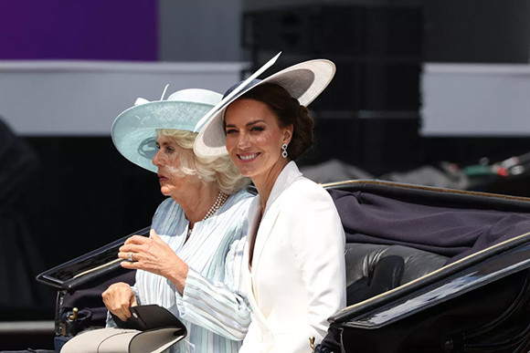 毎年恒例の英陸軍の式典、「トゥルーピング・ザ・カラー」でのキャサリン皇太子妃とカミラ王妃。(ロンドン、2022年6月2日)photography: Abaca